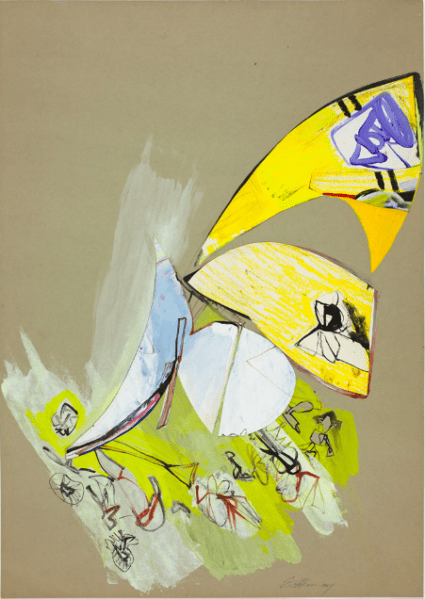 Eva Hesse’s No title 1963, gives me the feeling that the artist has decisively chosen to not choose and has preferred to combine the orthodoxies of the day – gestural abstraction and hard edge colour field. Both in danger of becoming clichés and each burdened with their tribes of patriots. Hesse could see, possibly subconsciously, that to break this binary would open again the doors of perception. She brought a voice of Dadaism into the mid-century and as a female artist in New York’s heavily competitive male dominated art scene there was a desperate need for new voices to challenge this status quo.
