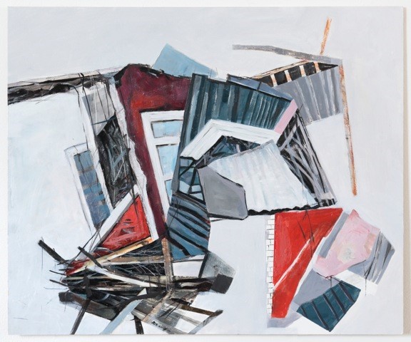 The paintings, Fragmented Dwelling and Urban Transformation, describe this time as the disintegration of the domestic space. Not only is the possibility of ownership becoming more remote for emerging generations but for those that have a home, the domestic space is now set in the context of surrounding development and unattainable images of perfection. The domestic space is being threatened on many levels as materialistic impulses cloud out communal and familial impulses. The stability and viability of that space is being torn, dislocated and shredded like the walls in these paintings. We can no longer claim to be escaping the slums, as Modernism claimed almost century ago, rather, it is now all for the sake of the new and the ideal as dictated by fake images of domestic perfection.