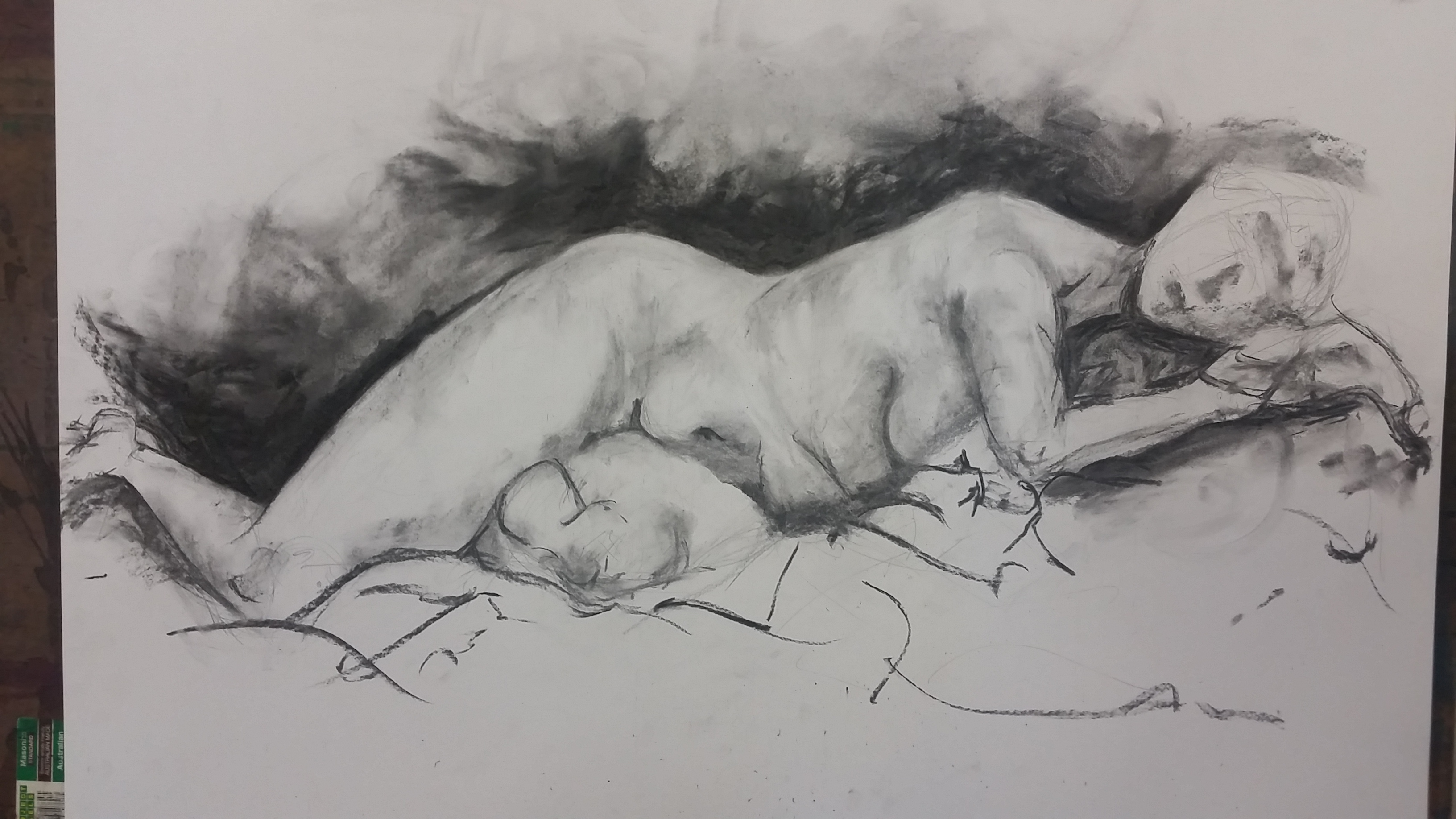 Day 3: Life Drawing #1. Pencil + Black Charcoal: