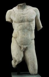 Hymn also conveys a modern representation of ancient Greek sculptures. During the Classical Period, Greek sculptures rapidly changed from using various clays to metal elements in order to keep the shape of the figure, regardless of how intricate they were. Bronze became a popular medium to use as it could be steadied inside the hollow of the feet by using lead weights. Typically, Ancient Greek sculptures are nude, have their arms hanging close to the body, and were created in appreciation of the human anatomy, sometimes representing a god. Making the naked form the subject of many art forms showed the great skill and technique of the artist. Not only were these art pieces created using metal elements, but scientists have also discovered artists would sometimes also paint them, like Hymn’s bronze statue that has been painted.